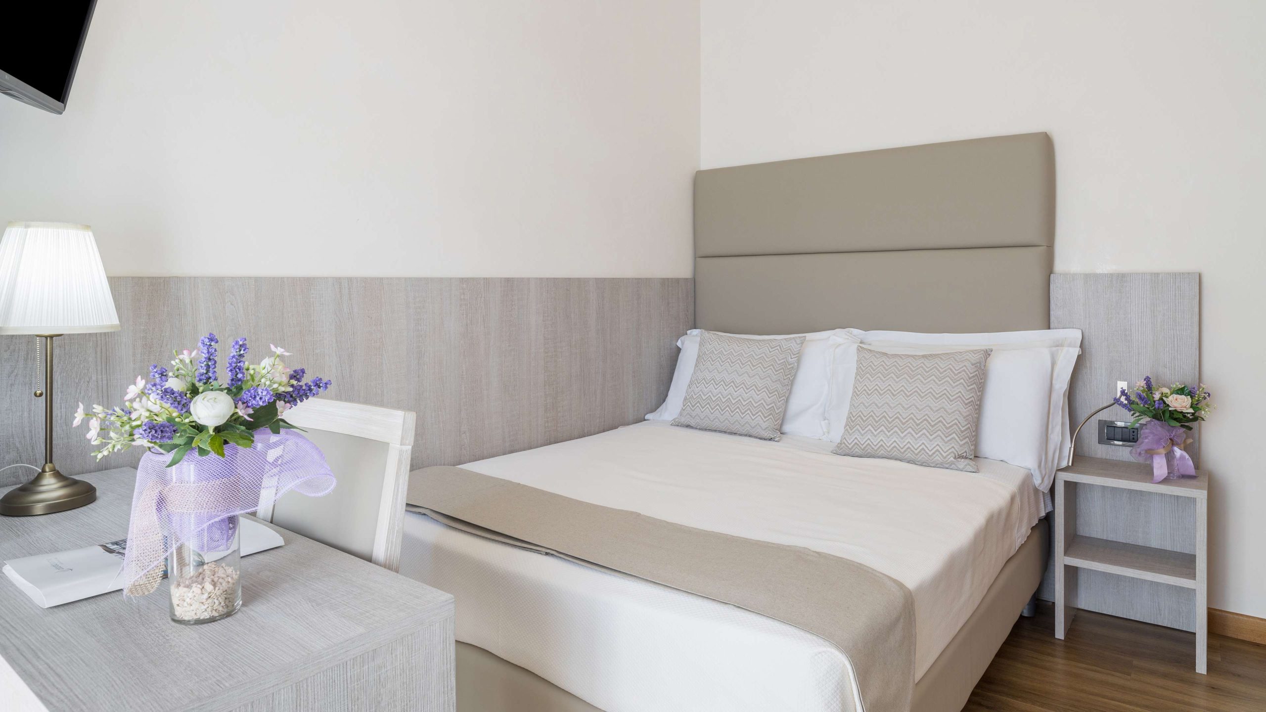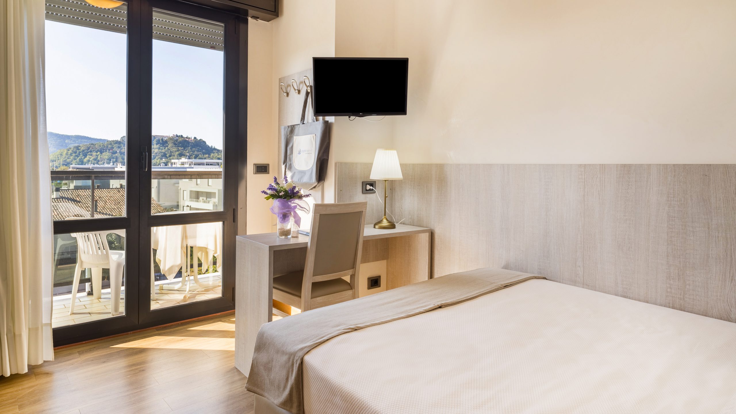 Le camere regine dell’Atlantic sono contraddistinte da arredi fini e linee essenziali. Il terrazzino con comode sedute completa il mosaico di comfort che si impreziosisce di ulteriori spazi e luminosità naturale.